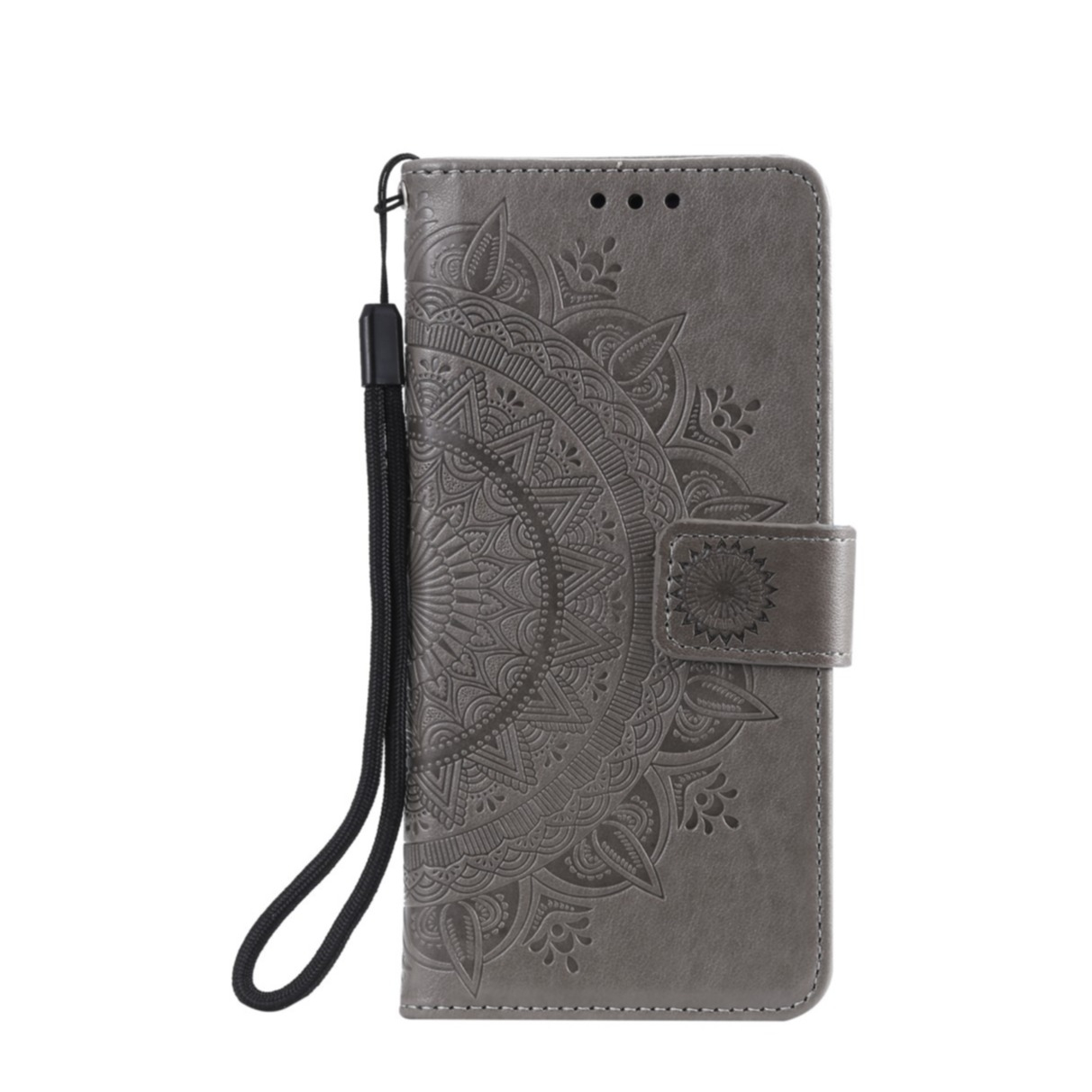 Samsung Galaxy S21 FE 5G Étuis en cuir Wallet - Mandala Flowers Imprint - Gris