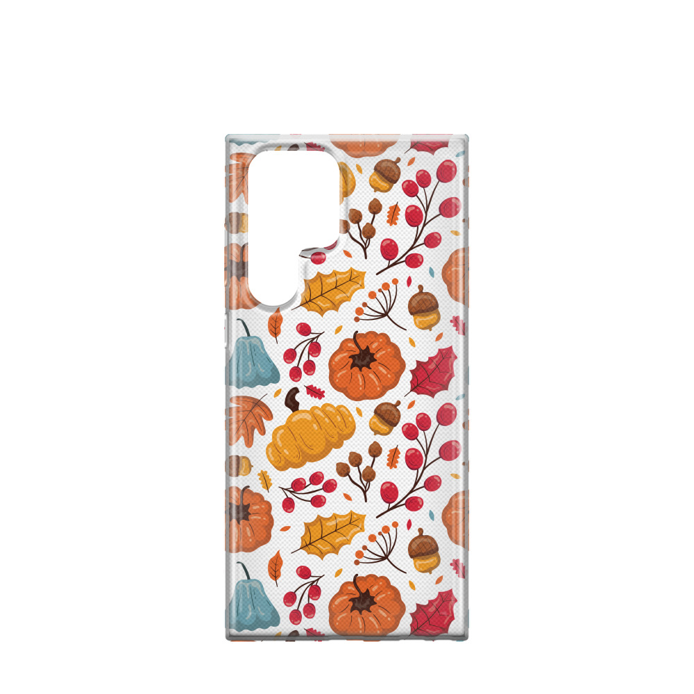 Samsung - Samsung Galaxy S22 Ultra 5G Coque en caoutchouc Feuilles et citrouilles - Orange