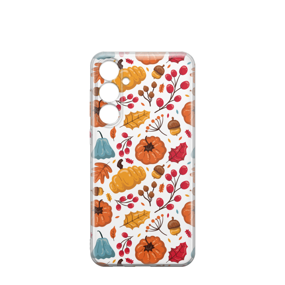 Samsung - Samsung Galaxy S23 FE Coque en caoutchouc Feuilles et citrouilles - Orange