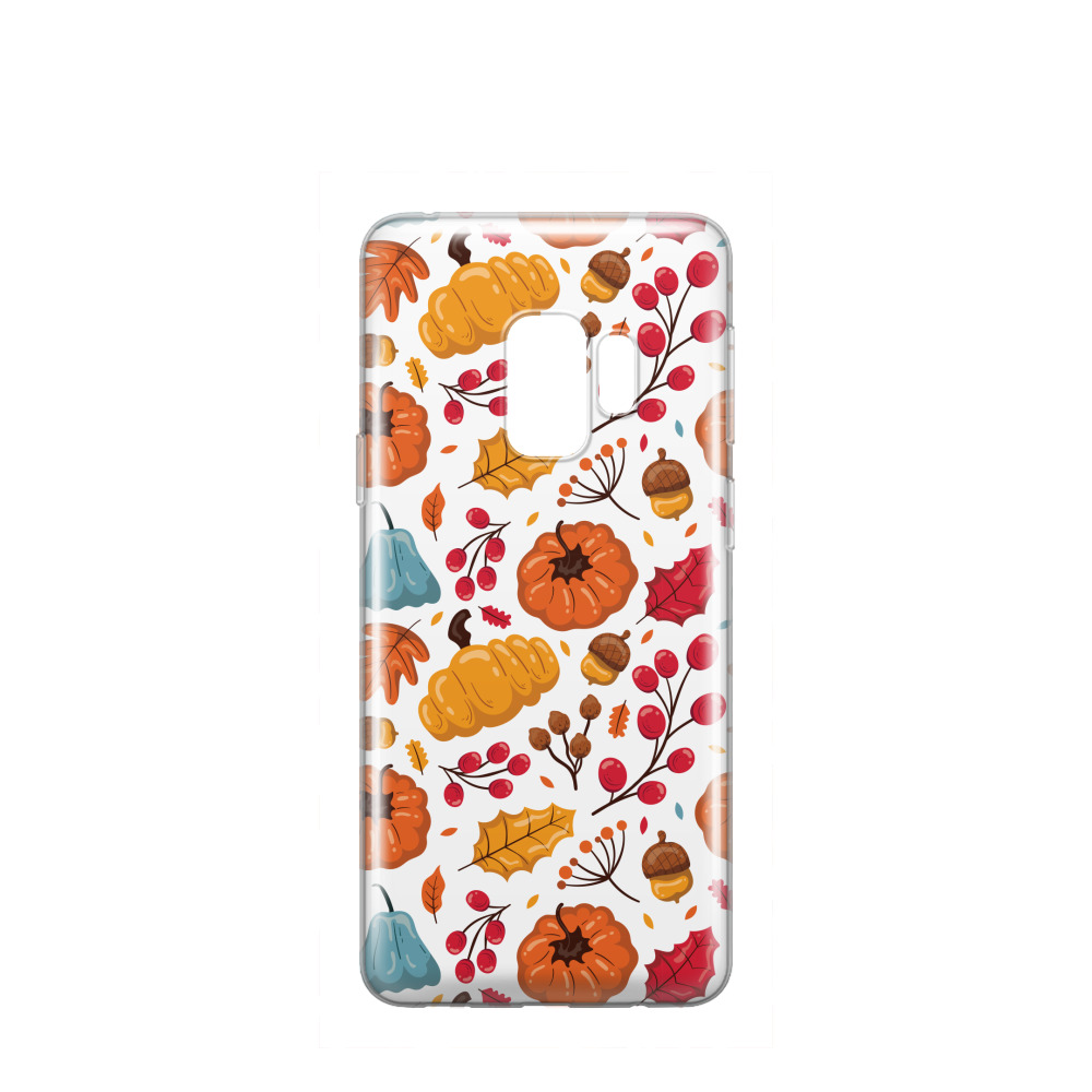 Samsung - Samsung Galaxy S9 Coque en caoutchouc Feuilles et citrouilles - Orange