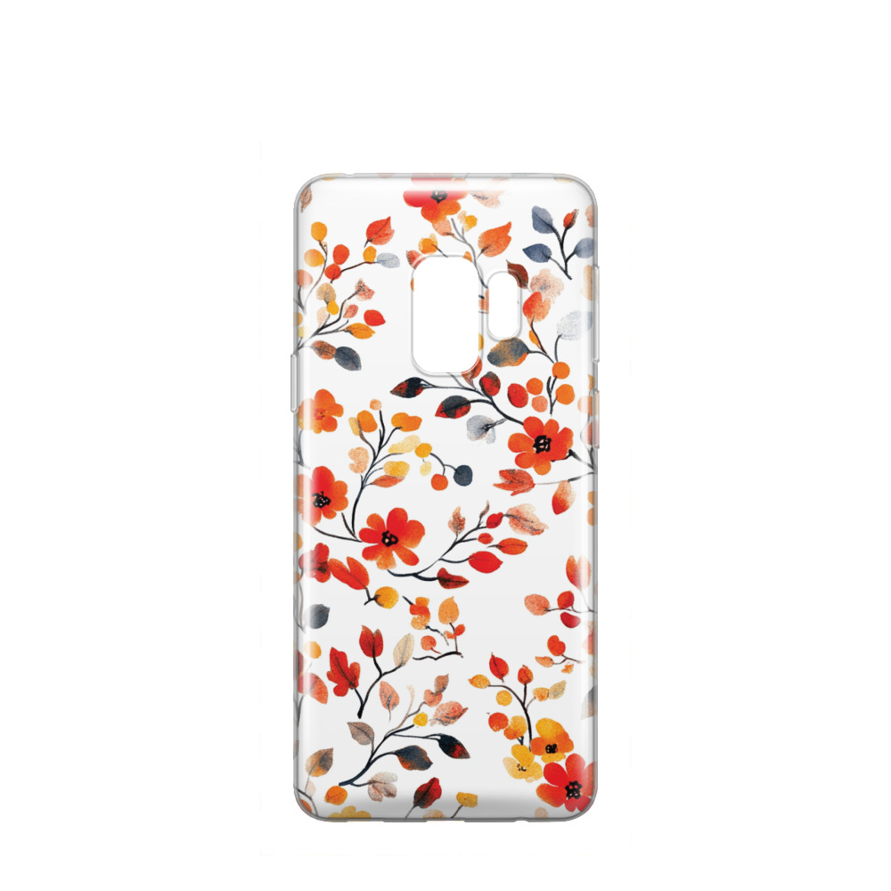 Samsung - Samsung Galaxy S9 coque en caoutchouc Fleurs d'automne 01 - Orange