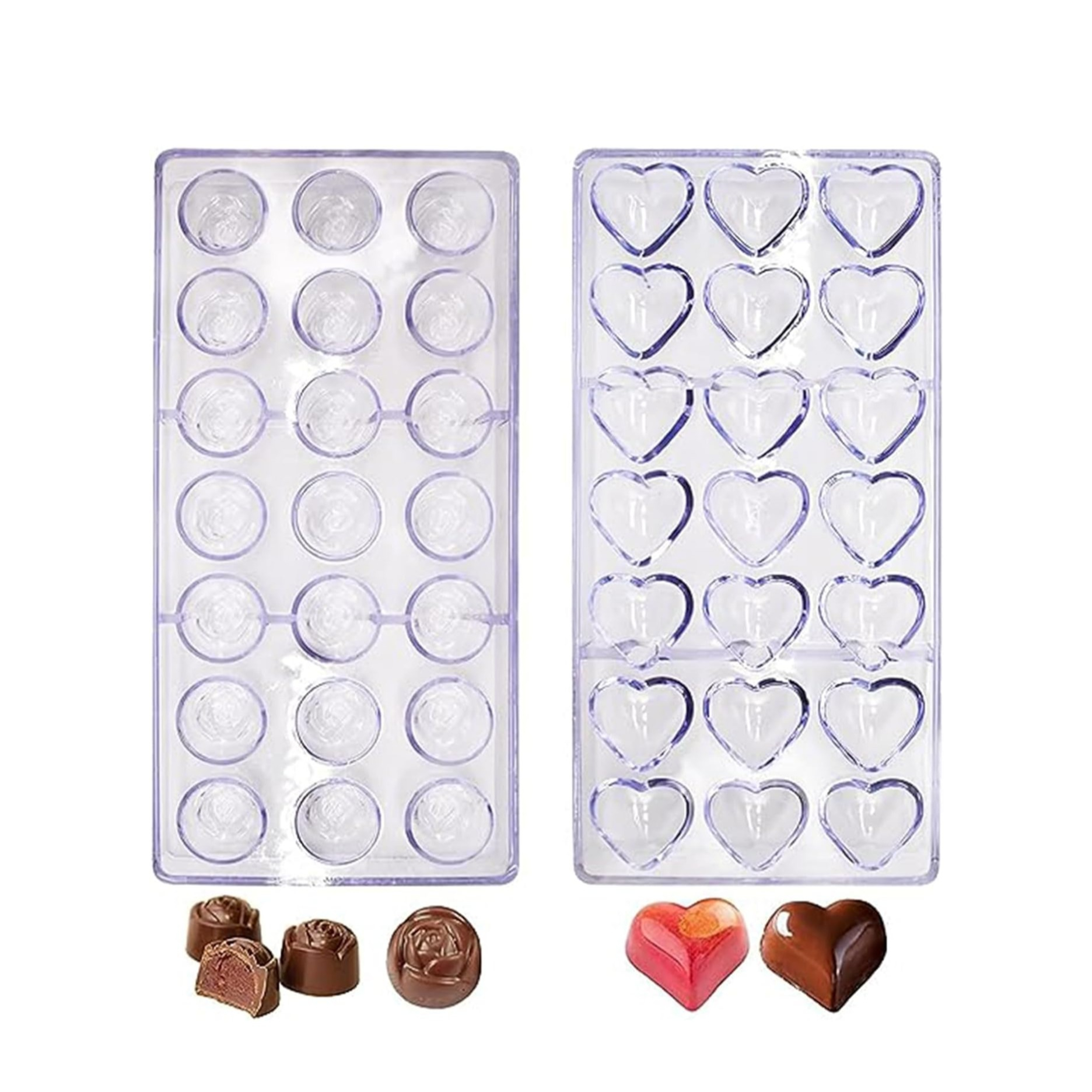 (set de 2) 42 moules à pralines 3D pour fondant / chocolat gâteaux + décoration de muffins - Rose / Cœur