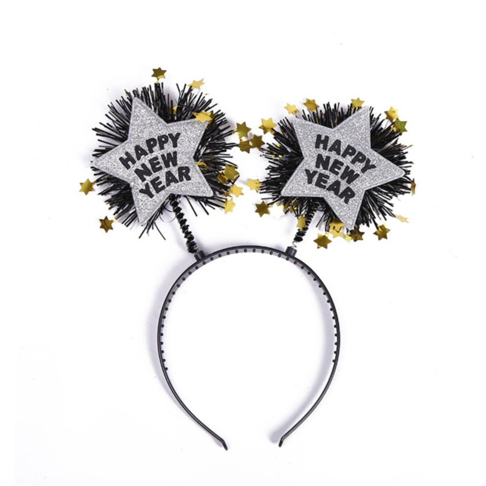 (set de 2) Happy New Year serre-tête Nouvel An PARTY Accessoire Bijoux de cheveux scintillants Design étoile - argent / or / noir