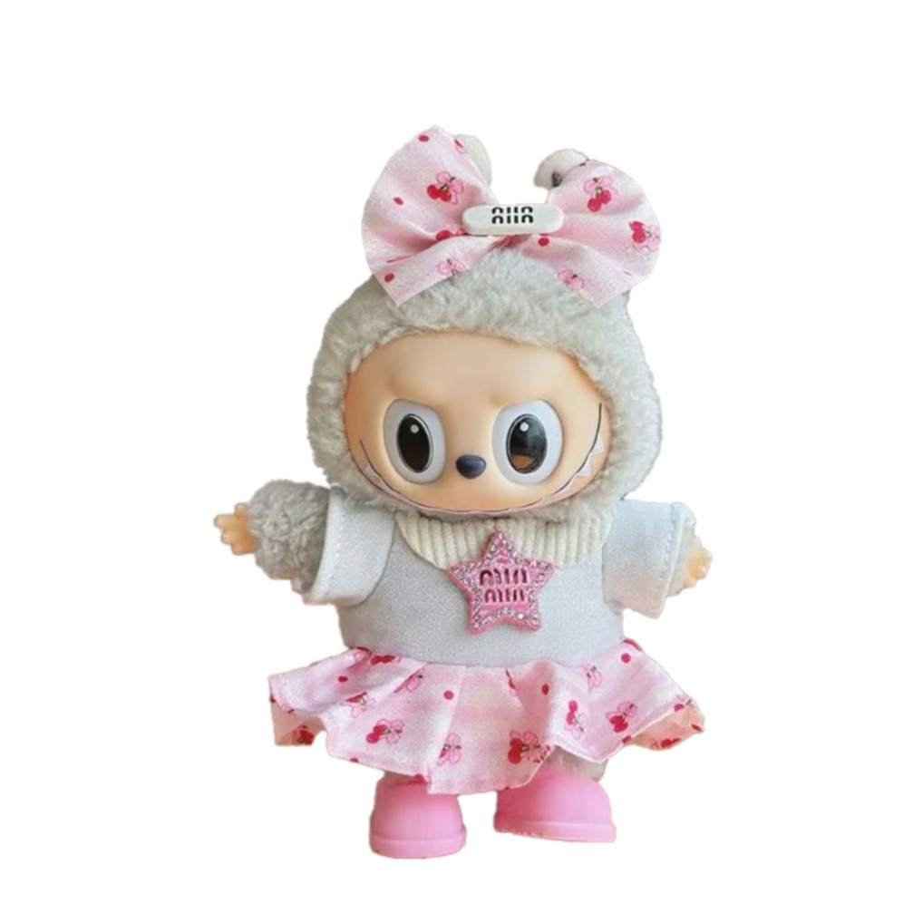 (set de 2 pièces) Monstre lapins cerises col robe accessoires de poupées tenue accessoire de déguisement y compris le ruban - rose / gris