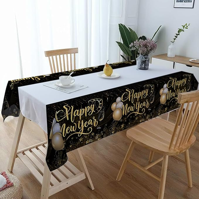 (Set de 3) 180x100cm Nouvel An Décoration Feuille Nappe PARTY Décoration Tissu de table - Happy New Year