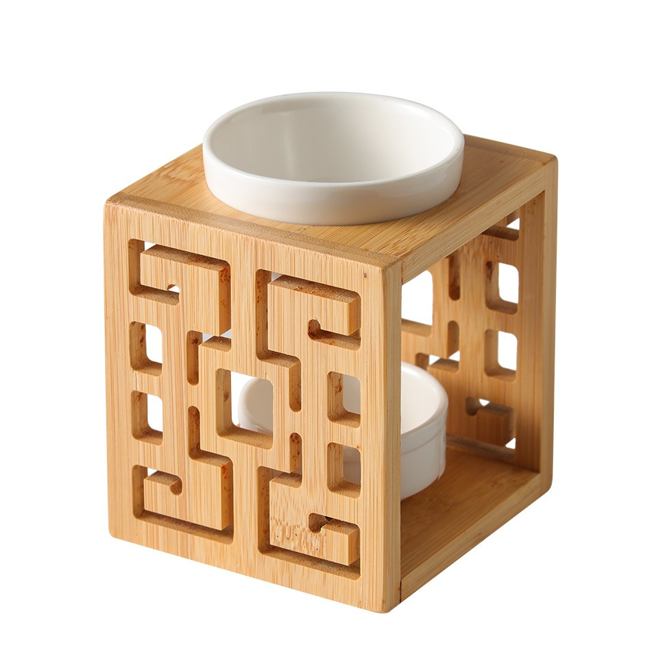 (Set de 3 pièces) 9x10cm Porte-bougie à chauffe-plat en bois Aroma Öl Duftlampe Bambus Home Deko Accessoire - Braun