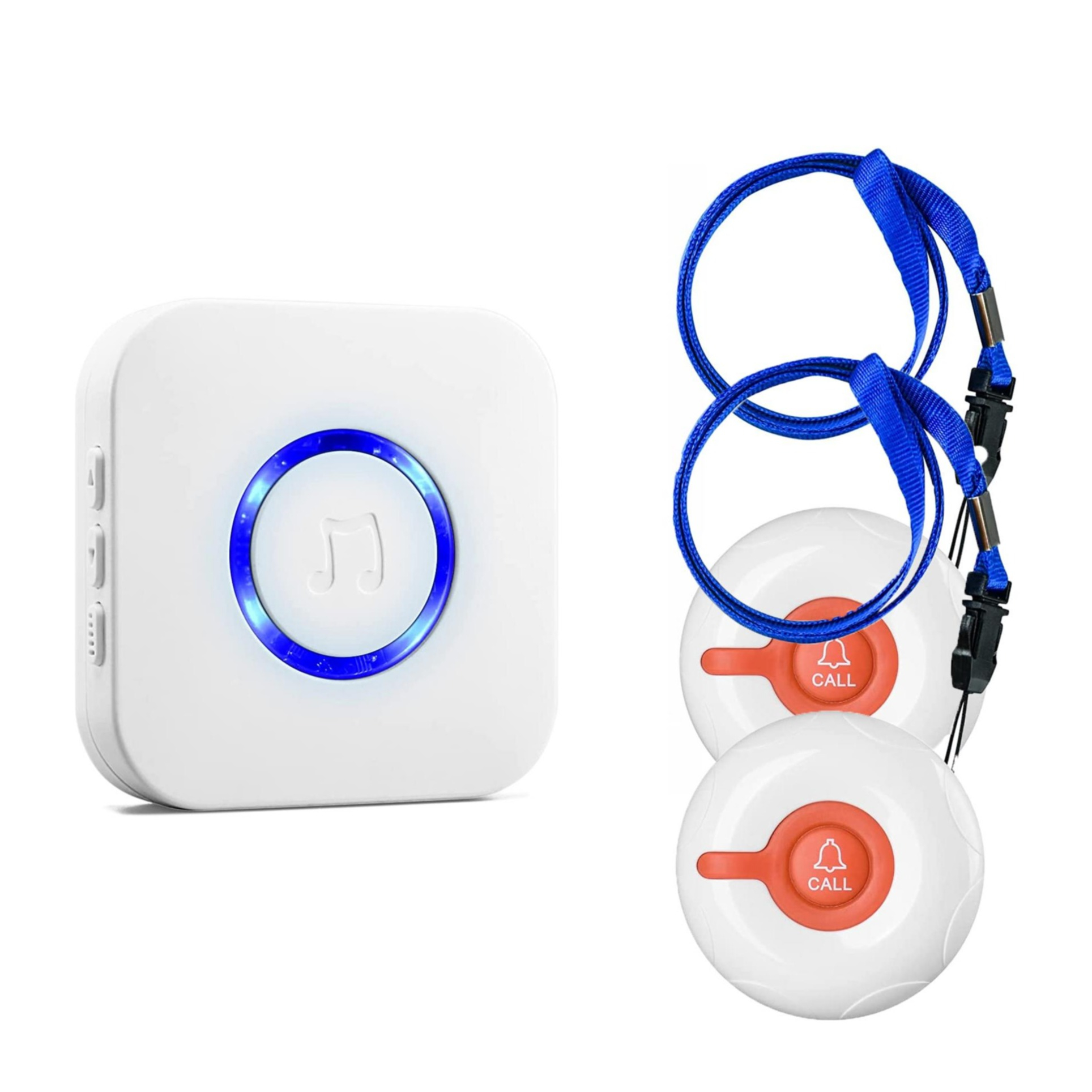(Set de 3 pièces) Alarme mobile de poche Alarme personnelle Sirène d'alarme Appel d'urgence Bouton SOS avec cloche sans fil (220V) - (2xBouton SOS / 1xCloche)