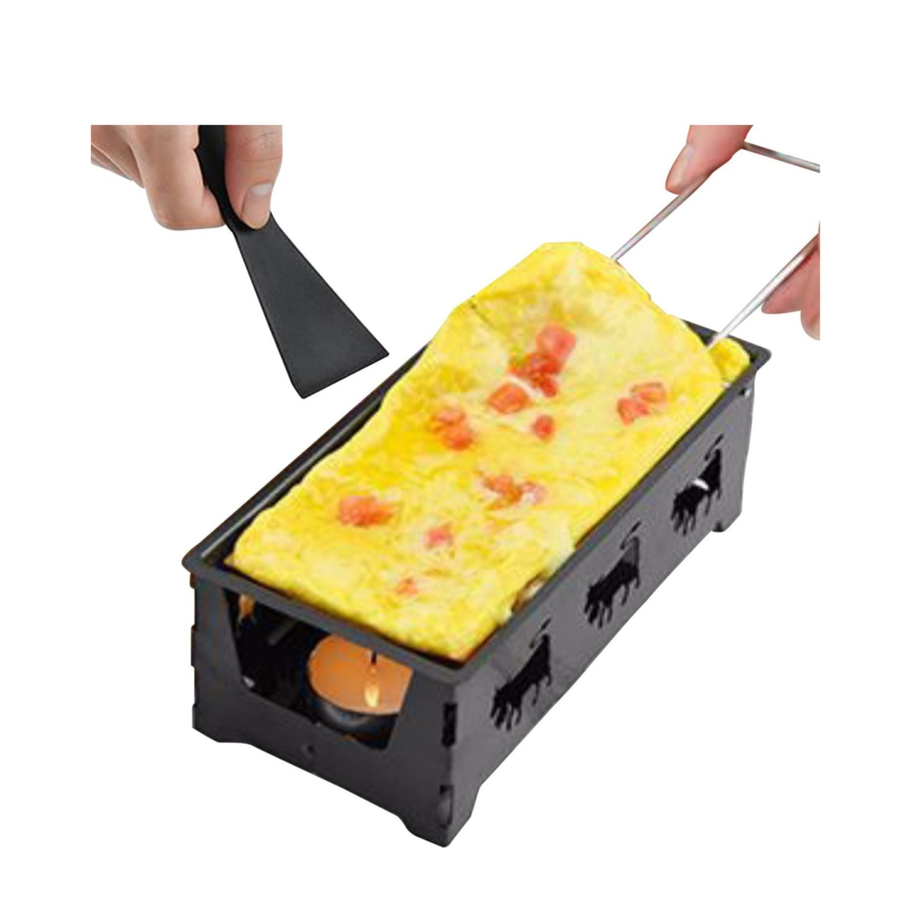 (Set de 3 pièces) Set de vaisselle anti-adhésive raclette fromage poêle à fondre + spatule - Noir