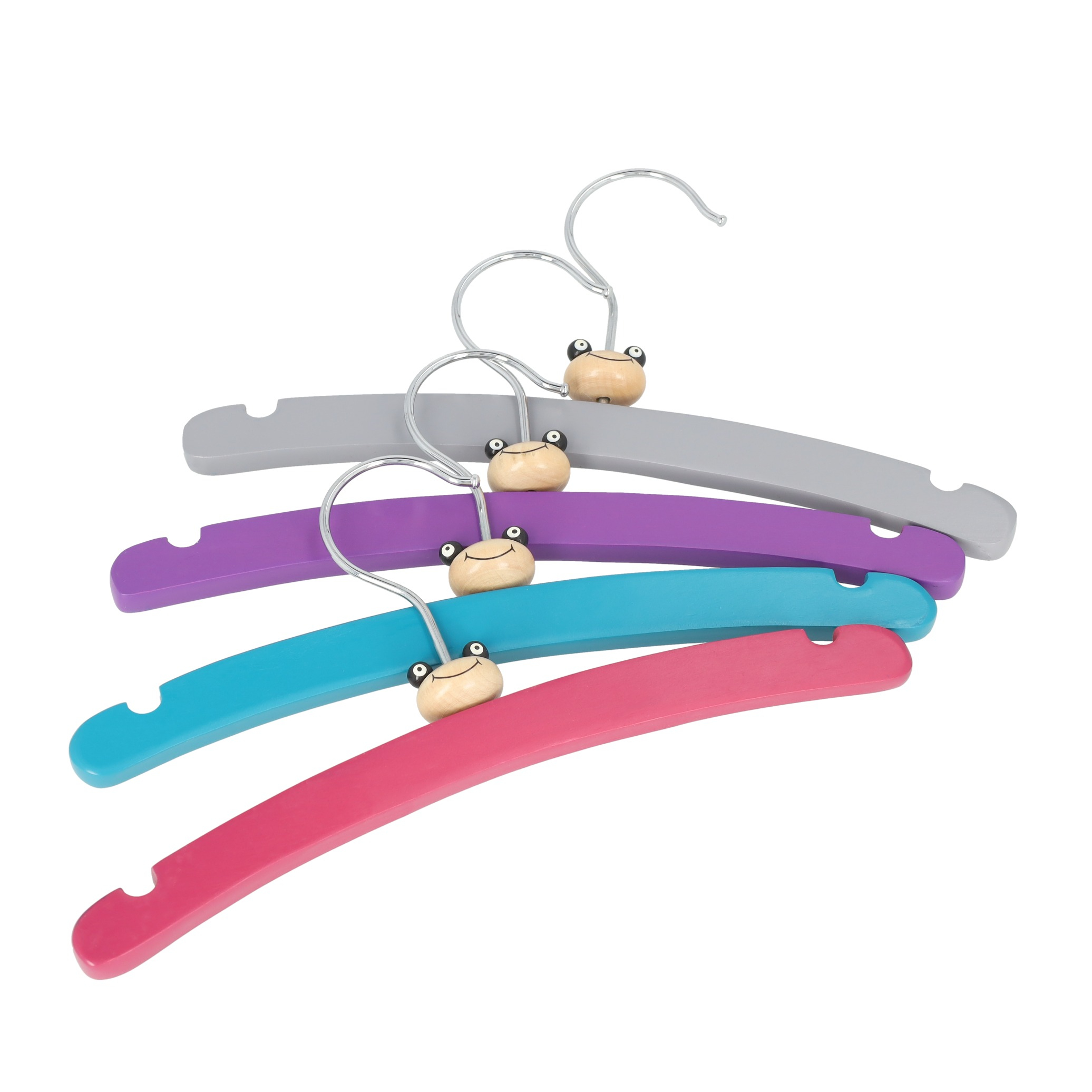 (Set de 4) cintres en bois pour enfants Organiseur de penderie pour bodys / barboteuses / vestes - Grenouille
