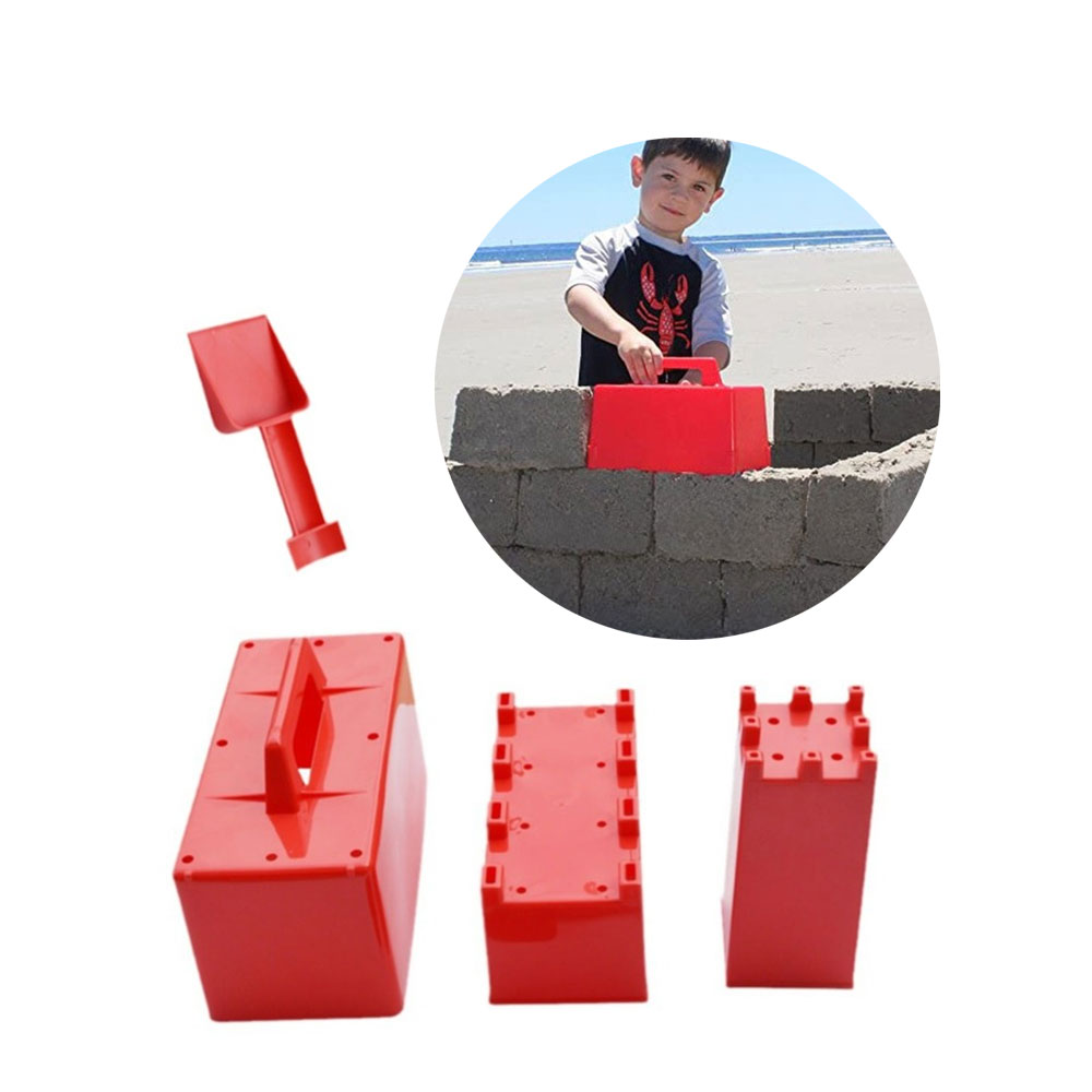 (set de 4 pièces) Jeu de sable pour enfants Château de sable Igloo Moules de construction Jeu d'extérieur, pelle incluse - Rouge
