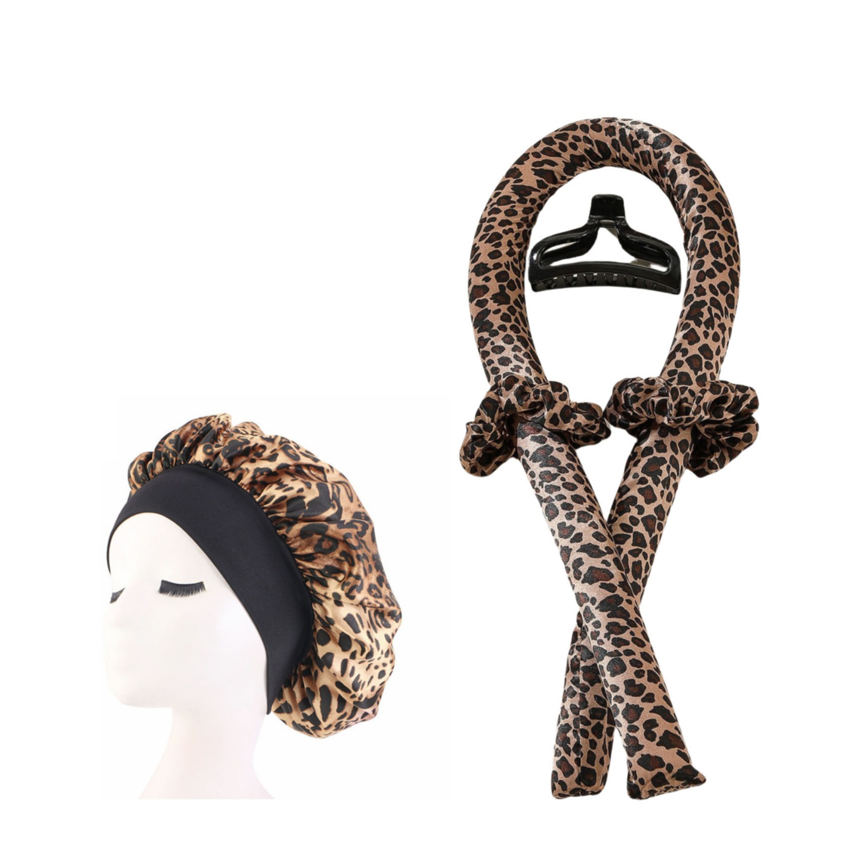 (set de 5 pièces) bandeau pour cheveux bouclés Heatless Curler chaussettes cheveux bouclés coiffure sans chaleur y compris barrettes / élastiques pour cheveux / bonnet de nuit - léopard
