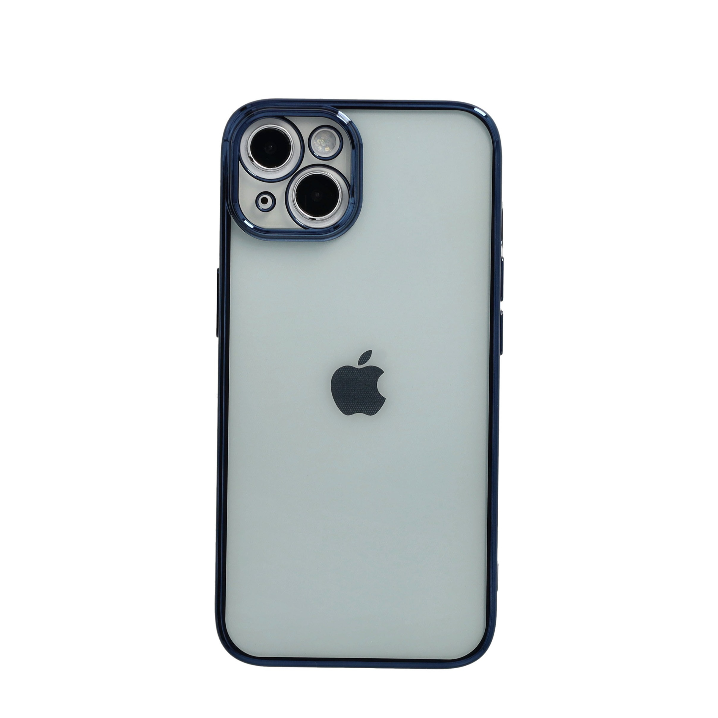 iPhone 13 coque en caoutchouc Cadre galvanisé + protection de caméra - Bleu