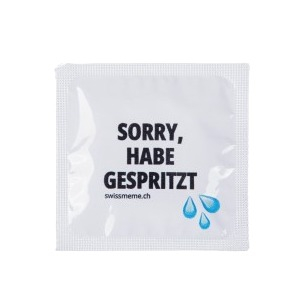 Avec ce préservatif drôle de SwissMeme, tu n'offres pas seulement une protection, mais aussi un bon sourire. Le emballage avec le slogan "Désolé, j'ai giclé" fait rire à coup sûr - que ce soit comme cadeau, article de farce ou simplement comme attention coquine.
