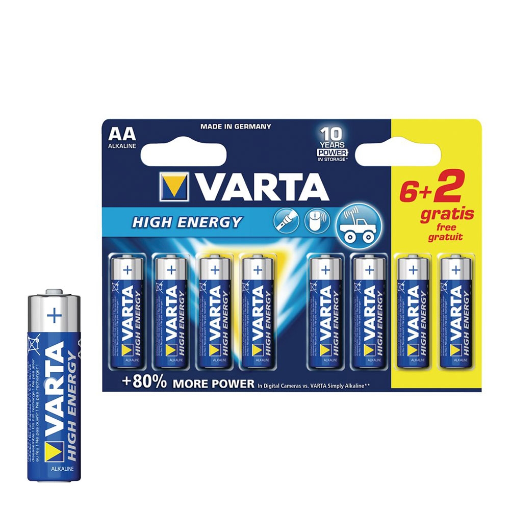 Varta Pile AA High Energy LR6 Alcaline 1.5V en boîte de 8 :