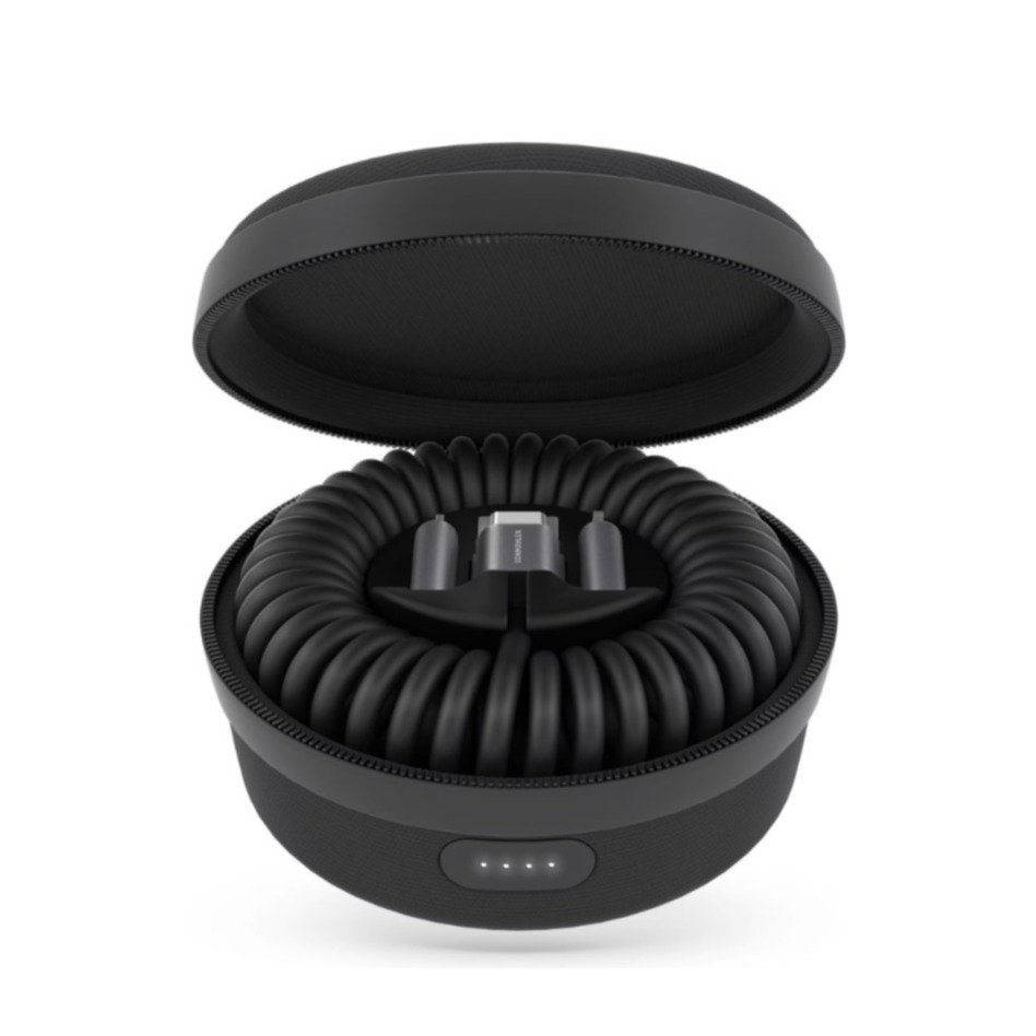 Ne te soucie plus jamais d'une batterie vide ou d'un enchevêtrement de câbles gênant. Grâce au câble spiralé, tu peux recharger tous tes appareils (smartphone, fitness tracker, etc.) avec un seul câble.