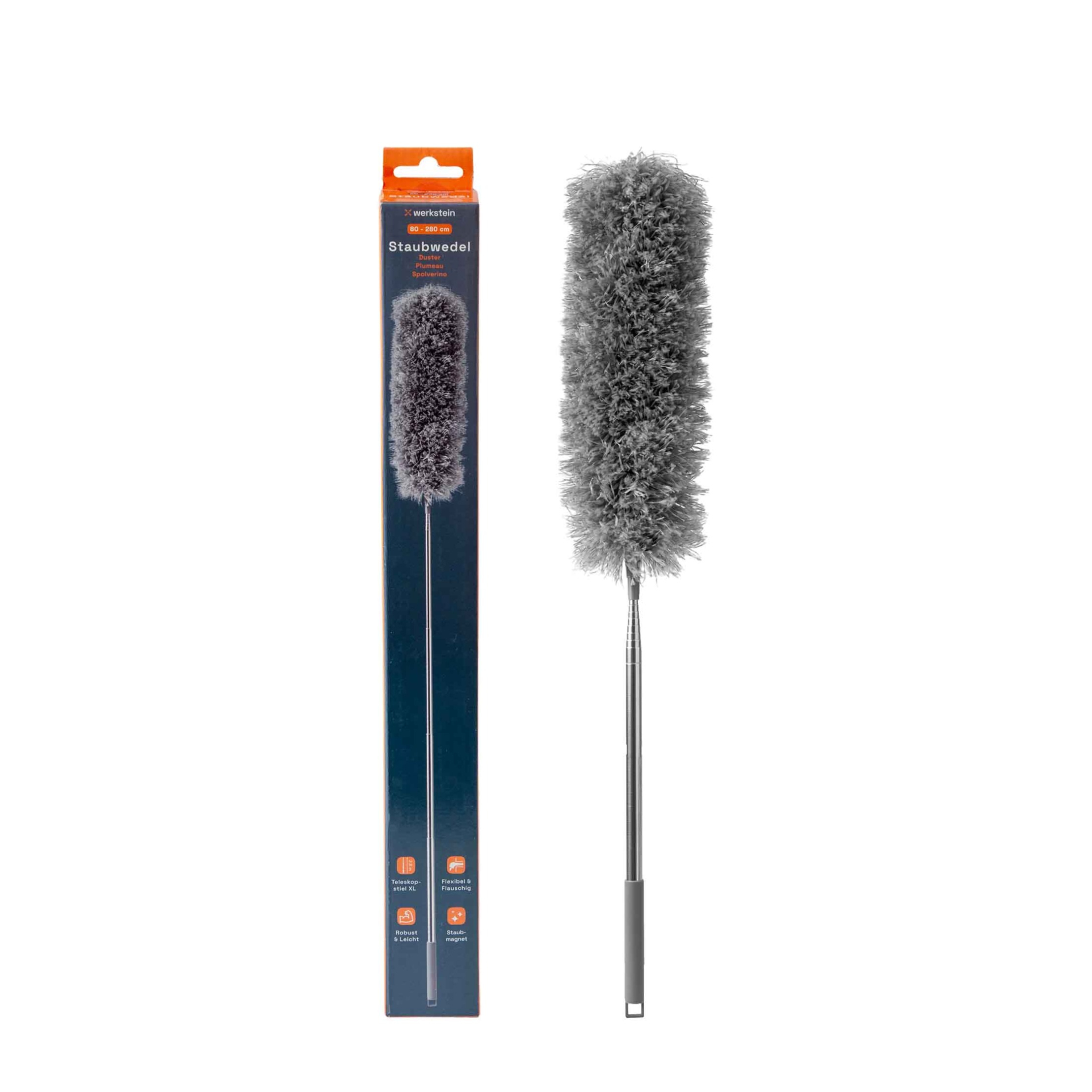 Commande dès maintenant ce plumeau universel de Werkstein et élimine la poussière et la saleté dans tous les coins. Grâce au manche télescopique de 2,8 mètres de long, tu es sûr d'atteindre les moindres recoins de ta maison. Faire la poussière n'a jamais été aussi facile qu'avec cette brosse de nettoyage en microfibre extra-douce.