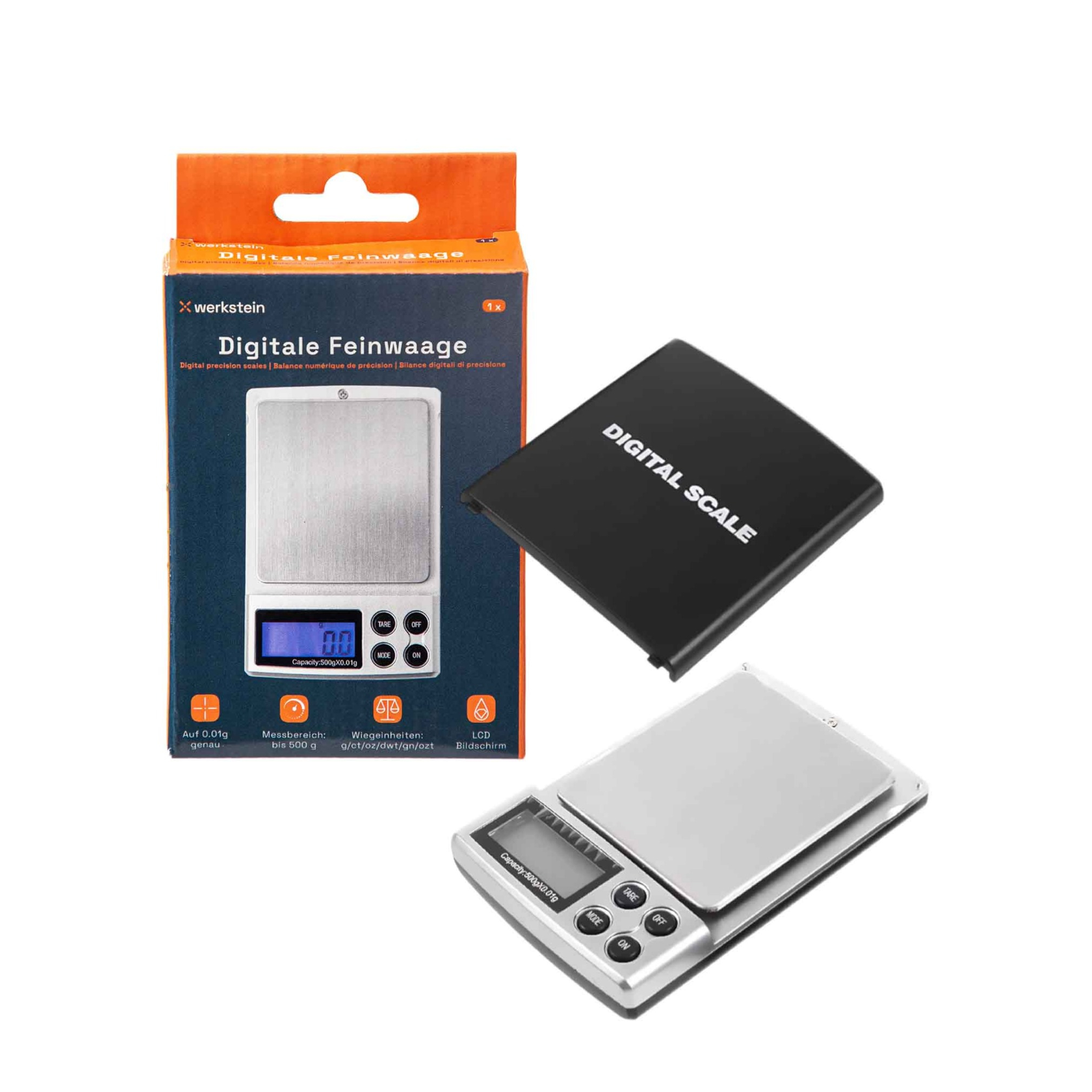 Tu reçois ici une mini balance de précision numérique pratique avec rétroéclairage LED bleu pour des poids dans la plage de 0.01 gramme - 500 grammes. La balance de Werkstein pèse avec une précision de 0,01 gramme. Pour l'alimentation, 2 piles de type AAA sont nécessaires (non fournies).
