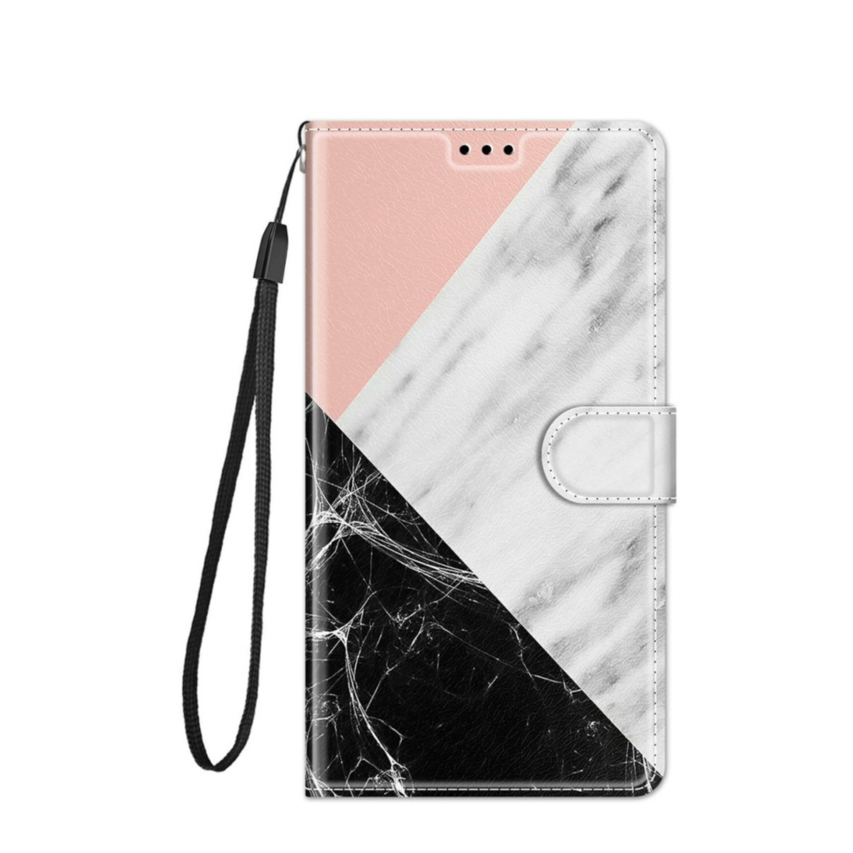 Samsung Galaxy A53 5G Leder Tasche mit Kartenfach + Handschlaufe - Marble Marmor (Weiss / Schwarz / Rosa)