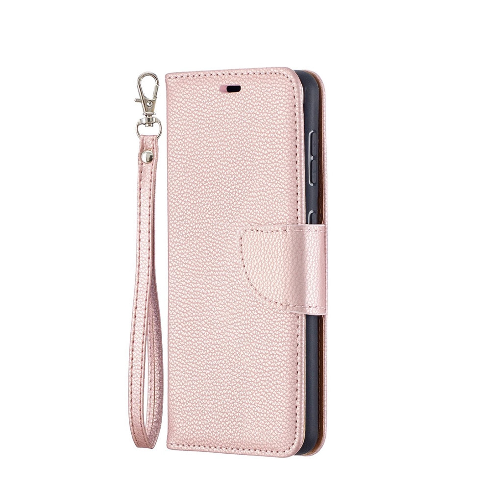 Samsung Galaxy S21 5G Leder Tasche Flip Cover im Litchi Look mit Kartenfach + Handschlaufe - Roségold