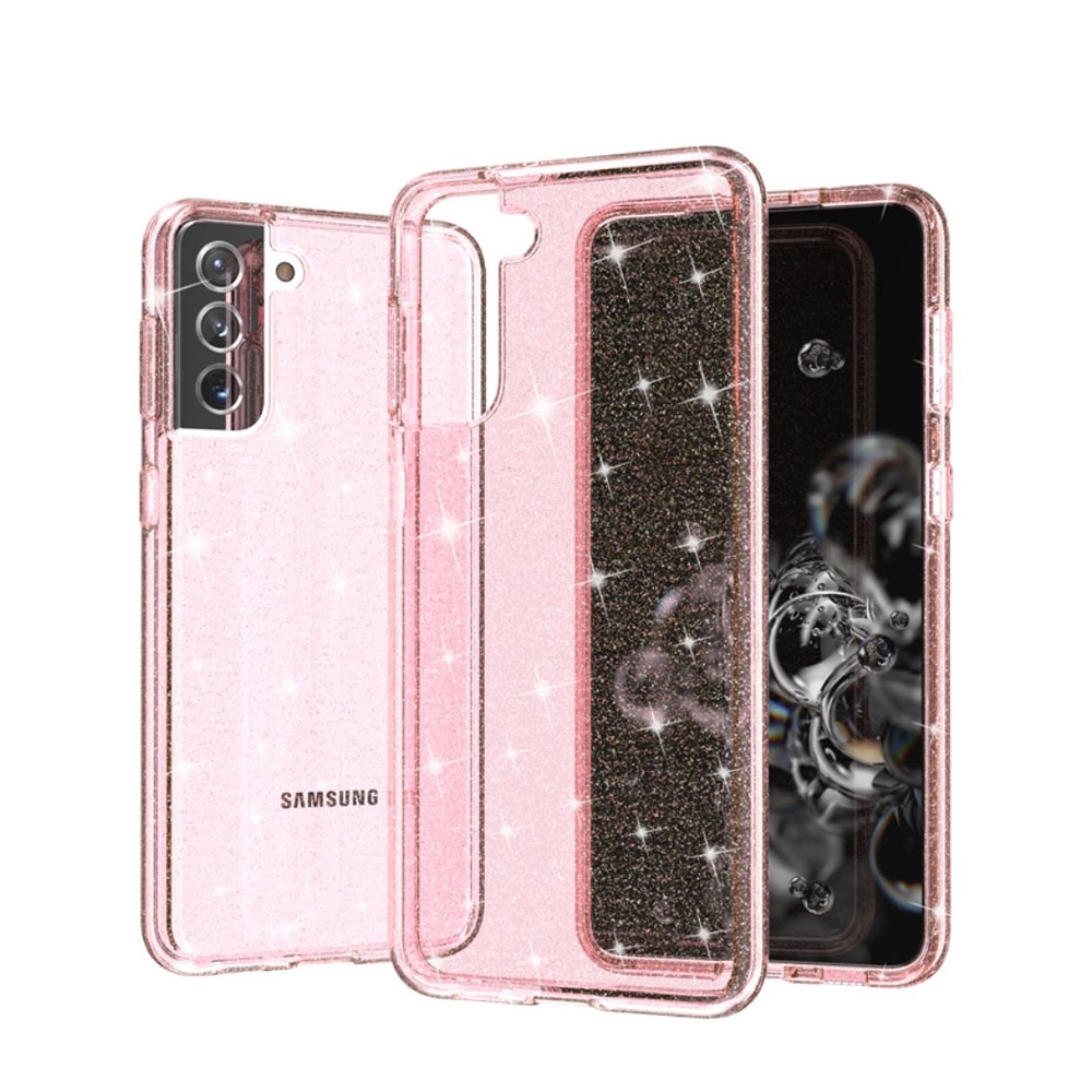 Samsung Galaxy S21+ Plus 5G Hybrid Hardcase Schutzhülle im Glitzer Design - Pink / Transparent