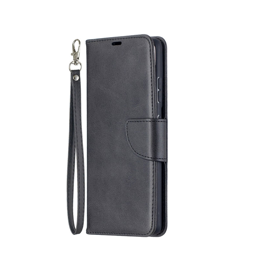 Samsung Galaxy S21 Ultra 5G Leder Tasche Flip Cover mit Kartenfach + Handschlaufe - Schwarz