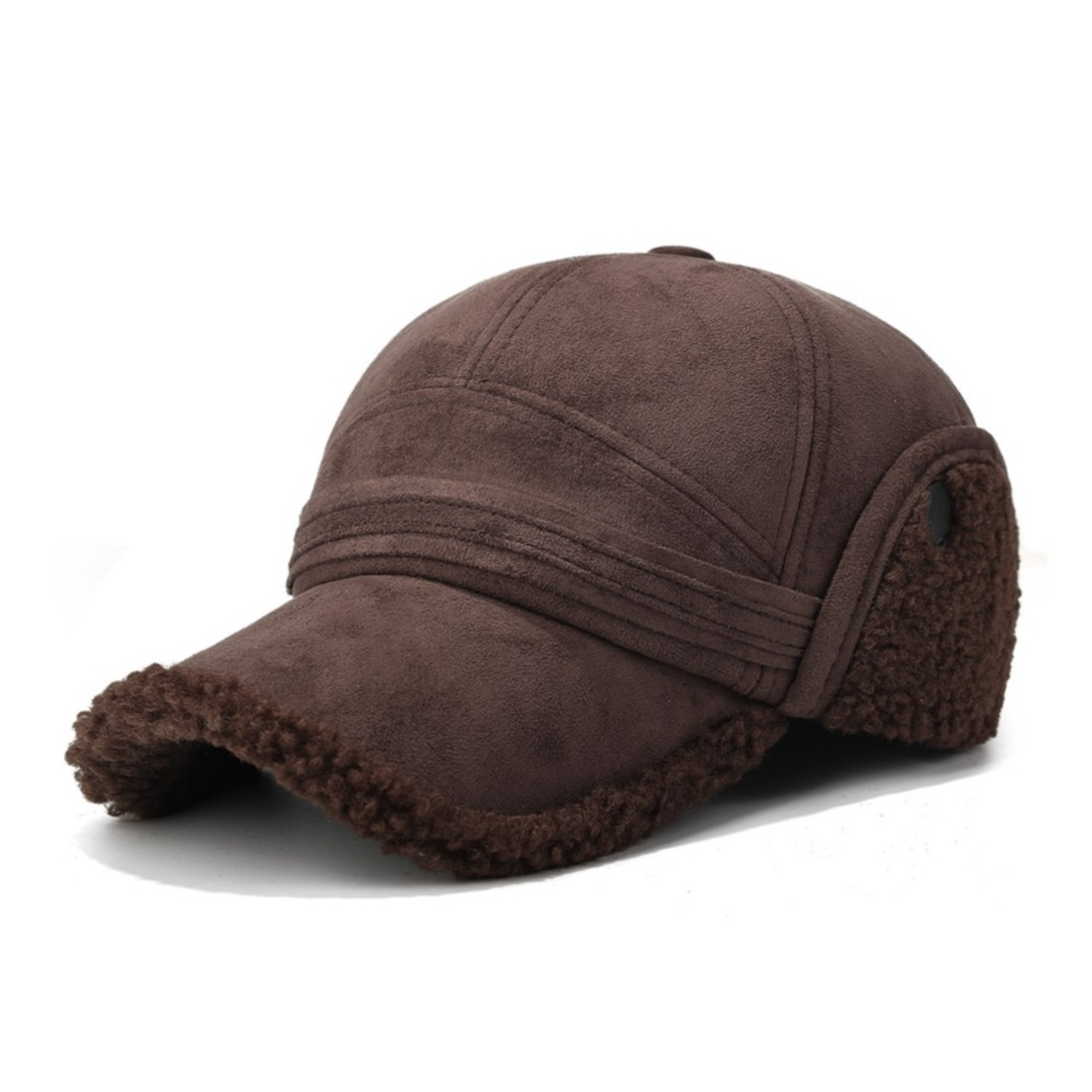 Gefütterte Winter Baseball Cap Ohrenwärmer Mütze im Wildleder Look (One Size) - Braun