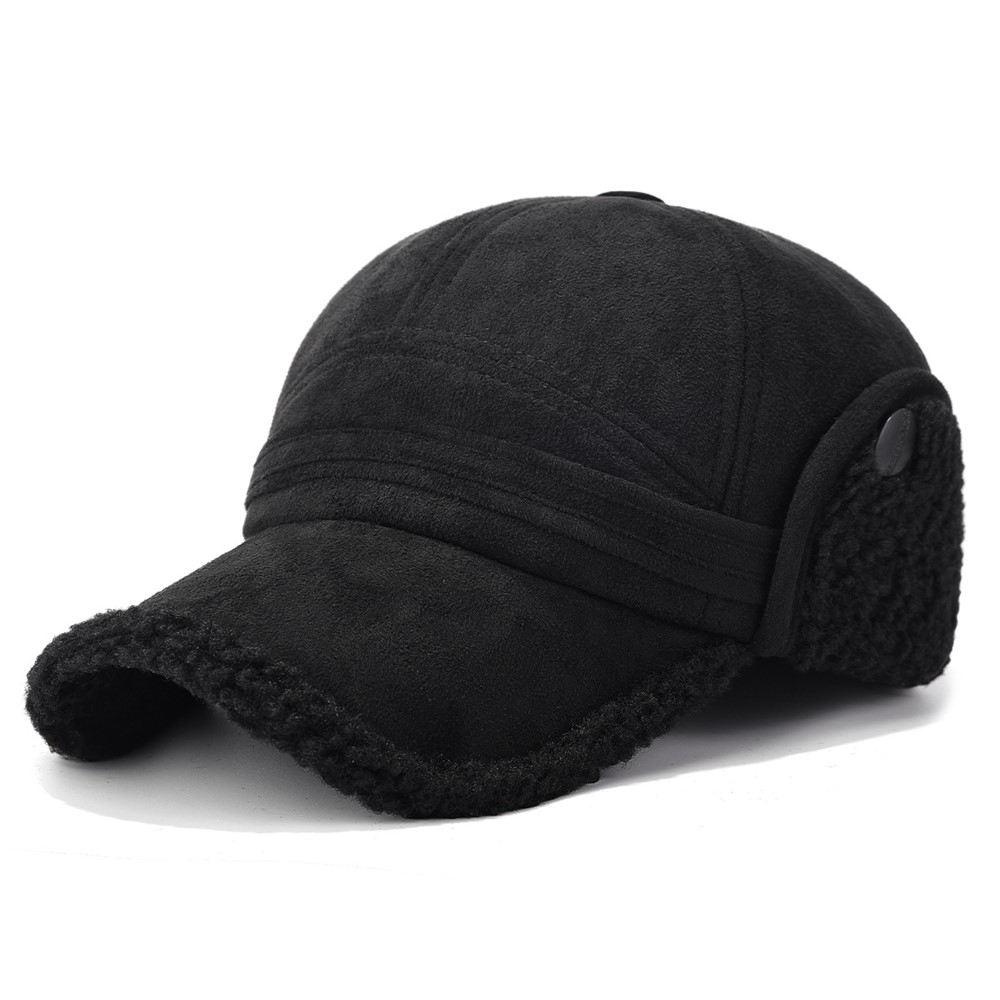 Gefütterte Winter Baseball Cap Ohrenwärmer Mütze im Wildleder Look (One Size) - Schwarz