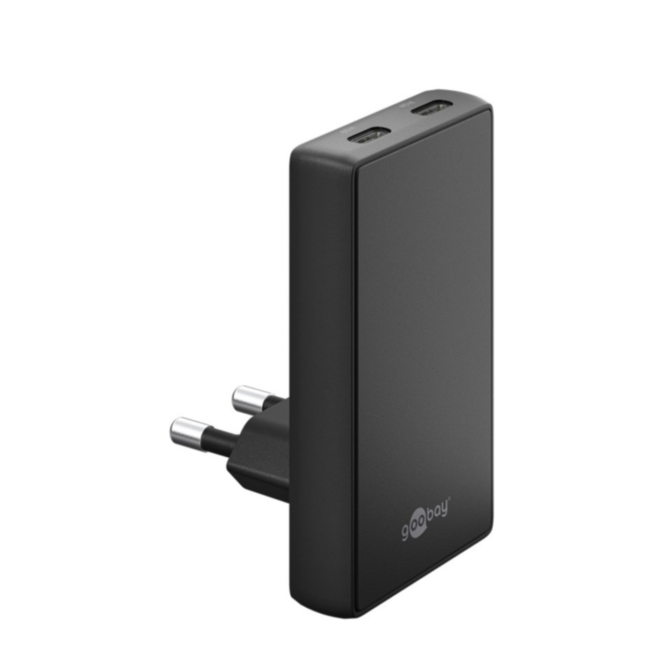 Schnell, smart und ultraflach – Das Goobay USB-C™ PD GaN Dual-Schnellladegerät 90° Flat (45W):