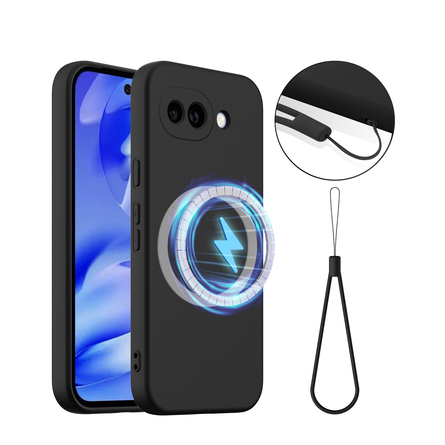 Google Pixel 9a Silikon Case Hülle + Trageschlaufe MagSafe-Modul - Schwarz
