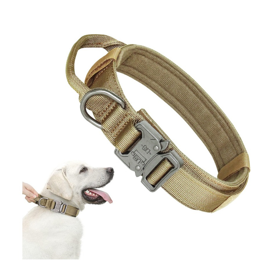 (Gr. L) 40-50cm Taktisches Hunde Halsband Verstellbares Haustier Accessoire mit Kontrollgriff - Khaki