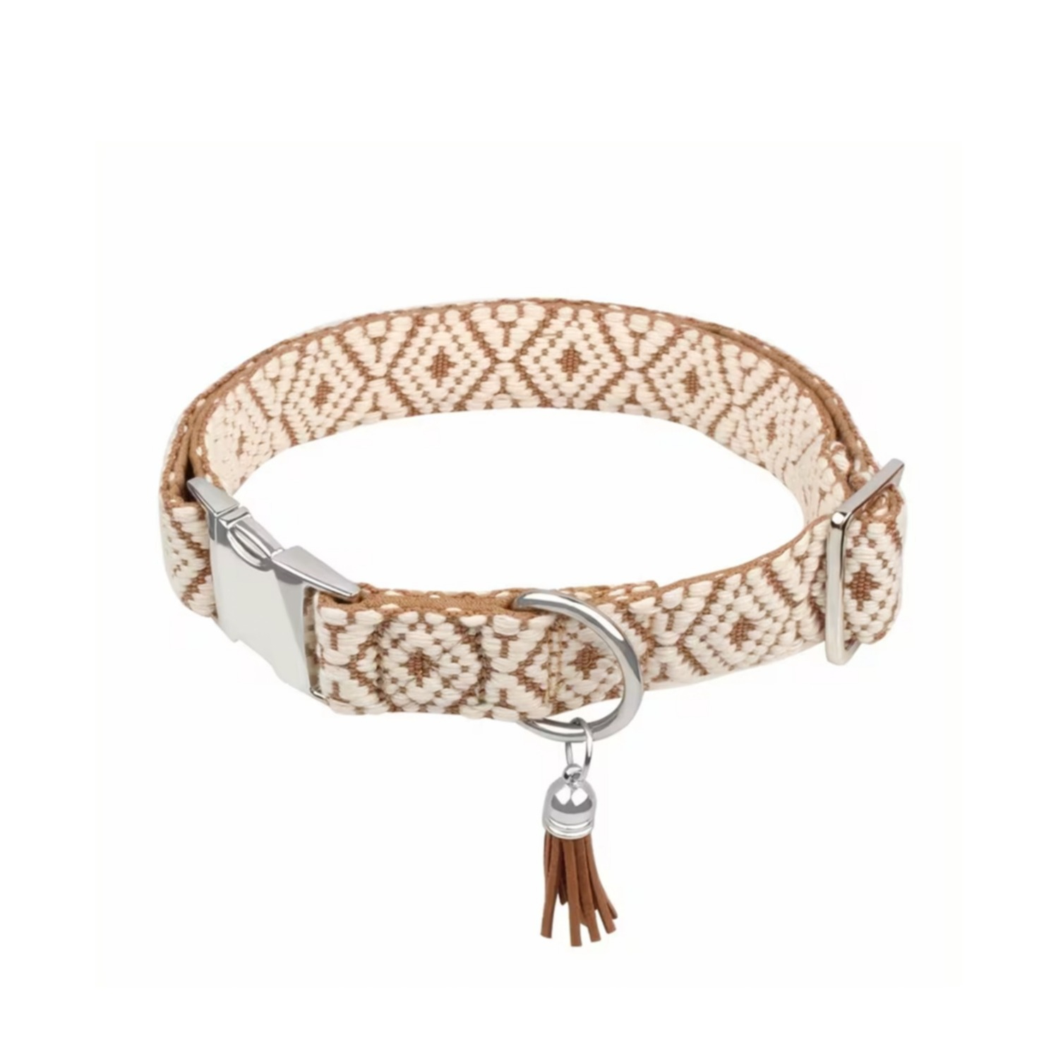 (Gr. S) Boho Hunde Halsband Verstellbares Haustier Accessoire mit Metall Schnalle / Tassel Anhänger - Beige / Weiss