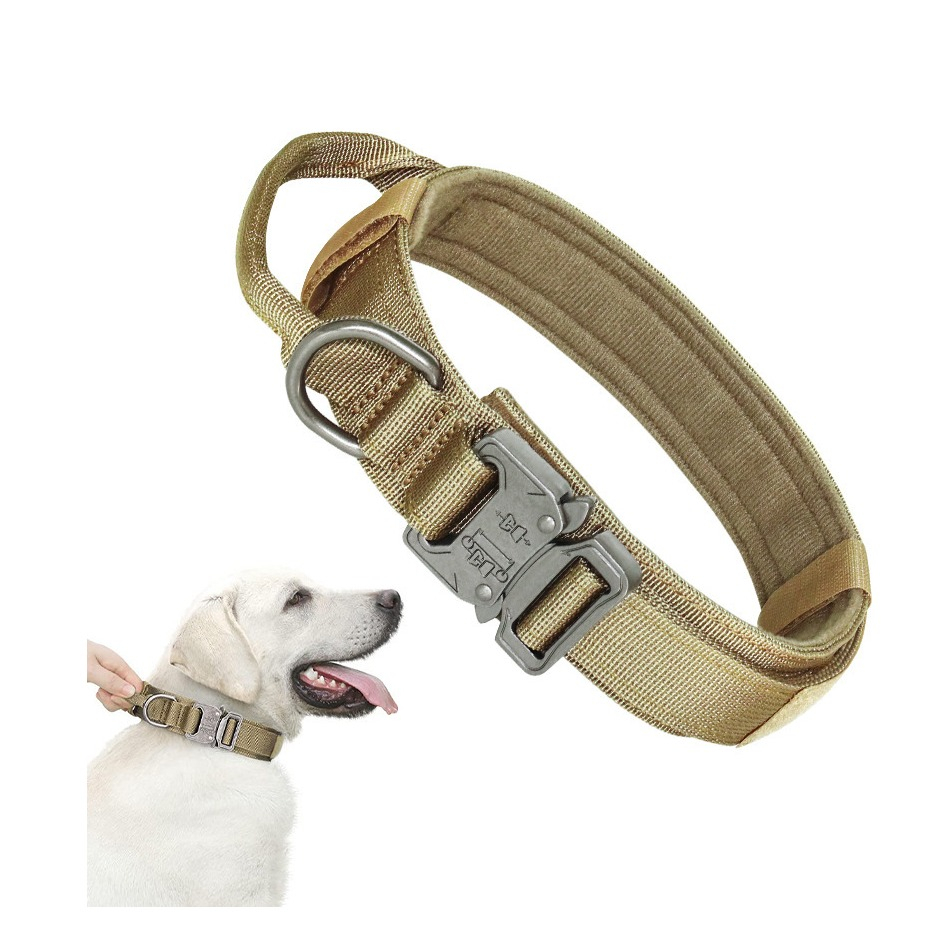 (Gr. XL) 47-57cm Taktisches Hunde Halsband Verstellbares Haustier Accessoire mit Kontrollgriff - Khaki