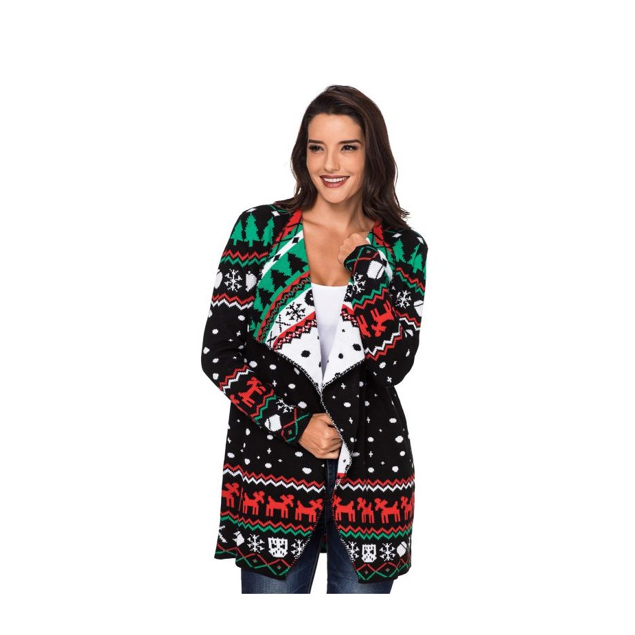 Dieser niedliche Cardigan wird diesen Winter Kernstück Deines Kleiderschrankes: Das einzigartige Muster aus verschiedenen Motiven kombiniert mit einem Kleid und Stiefeln und schon bist Du passend für die Weihnachtszeit eingekleidet. Der weiche Stoff der Strick Jacke passt sich Deinem Körper an und garantiert einen angenehmen Tragekomfort. Bestelle Dir heute noch unseren gemusterten weihnachts Cadrigan und kreiere trendige Looks!