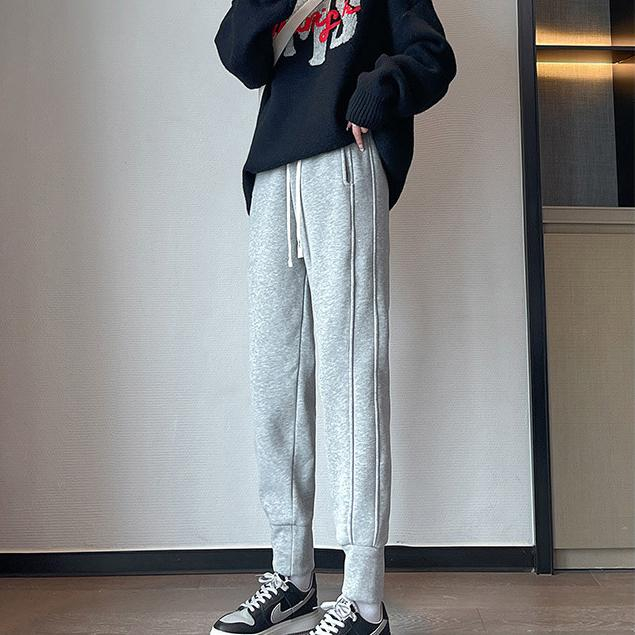 (Gr. XS) Warme Damen Jogginghose Winter Sweatpants Loungewear Plüsch gefüttert - Hellgrau