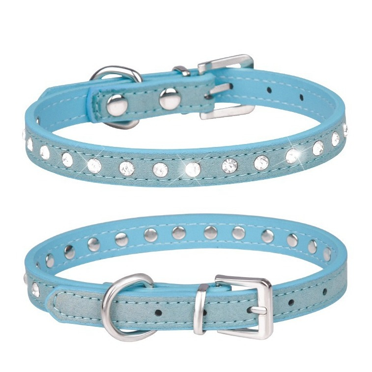 (Gr. XXS) 15-20cm Leder Hunde Halsband Verstellbares Haustier Accessoire mit Metall Schnalle / Strasssteinen - Blau