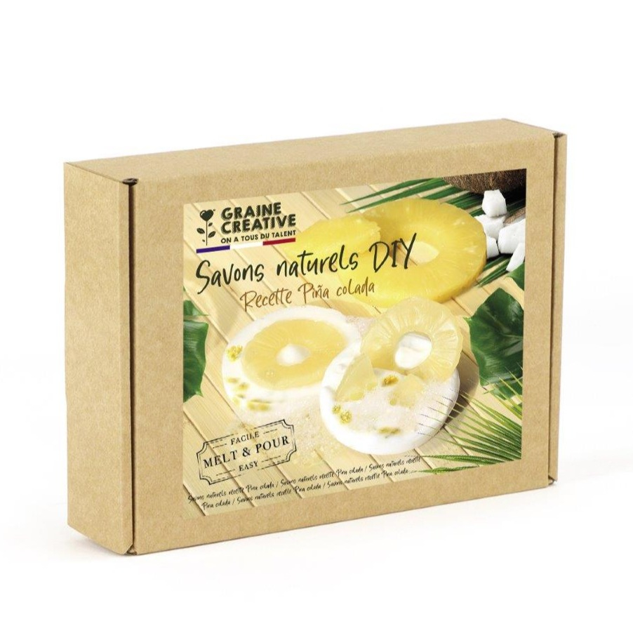 Mit dem Seifen DIY Kosmetik Bastel Kit von Graine Créative stellst du im Handumdrehen deine eigenen Piña Colada Cocktail Seifen her. Das 6-tlg. Set bietet dir alles, was du für kreative DIY Projekte brauchst – perfekt für dich selbst oder als besondere Geschenkidee für kreative Köpfe.