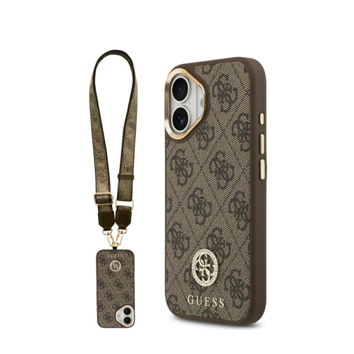 (130cm) iPhone 17 MagSafe Necklace Hardcase Hülle Crossbody 4G Strass Logo & Big Strap (GUHMP17SP4G4DCSW) - Braun