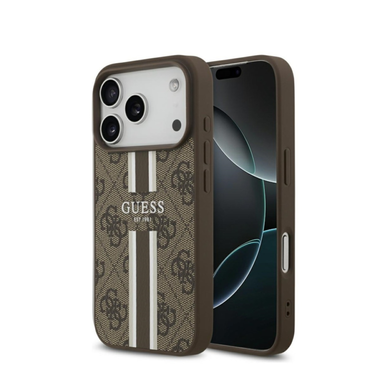 iPhone 17 Pro MagSafe Leder Hardcase Hülle 4G Printed Stripes (GUHMP17LP4RPSW) - Braun
