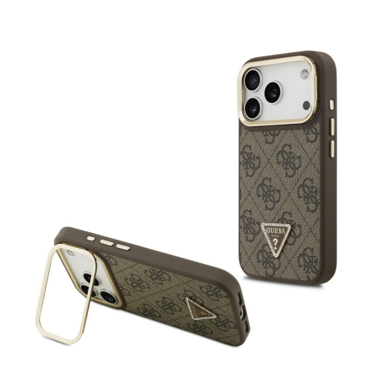 iPhone 17 Pro MagSafe Leder Hardcase Hülle 4G Triangle Logo & Stand Camera (GUHMP17LPCS4GPTW) - Braun