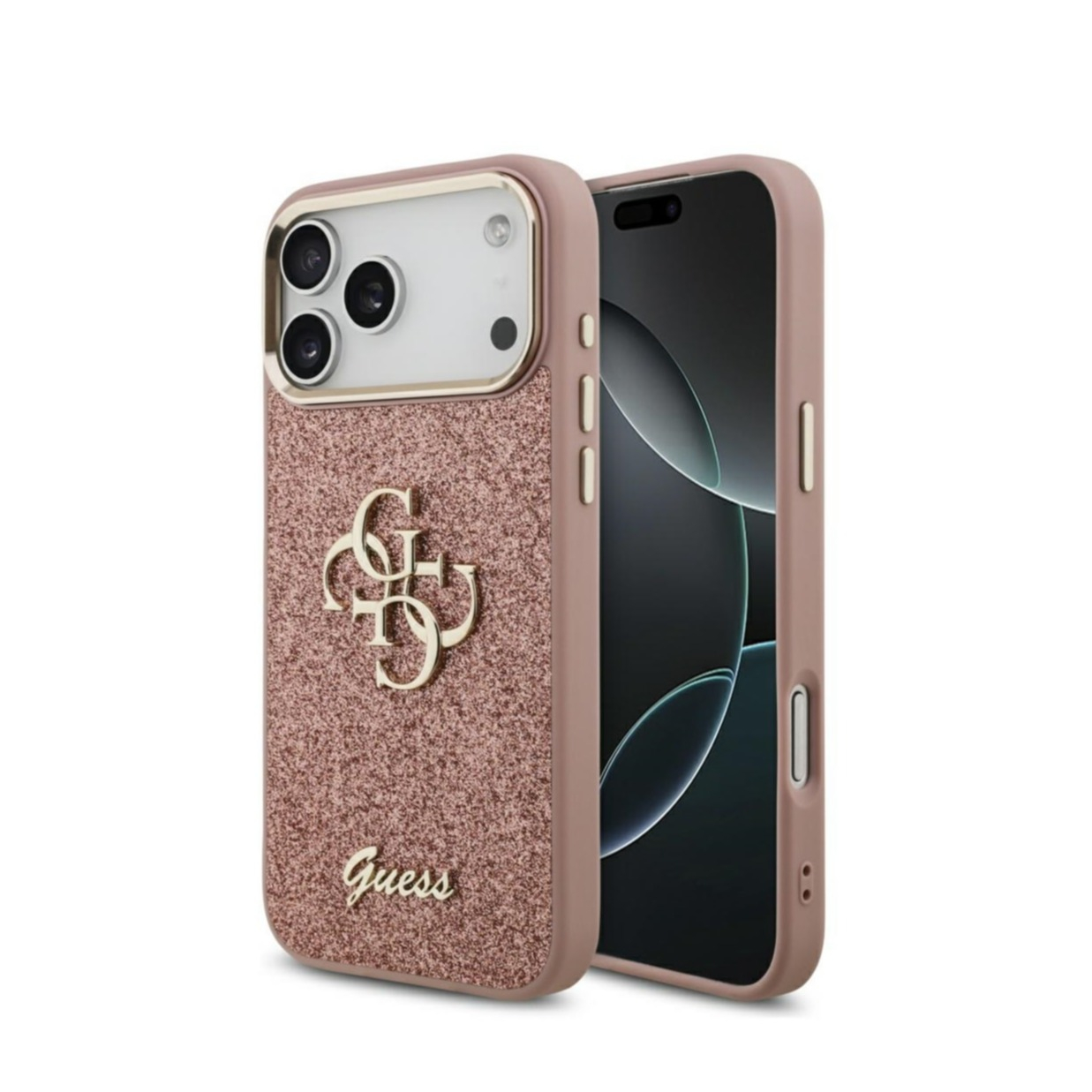 Die schlichte und dennoch edle Hardcase Hülle von Guess hat sämtliche Aussparungen für die Tasten, den Ladeanschluss und die Kamera. Störende Kratzer und sonstige Gebrauchserscheinungen auf der Rückseite gehören der Vergangenheit an. Mit der Guess Fixed Glitter 4G Hülle schützt du dein Apple iPhone 17 Pro Max nicht nur vor Schäden, sondern verleihst diesem auch ein stilvolles Aussehen.