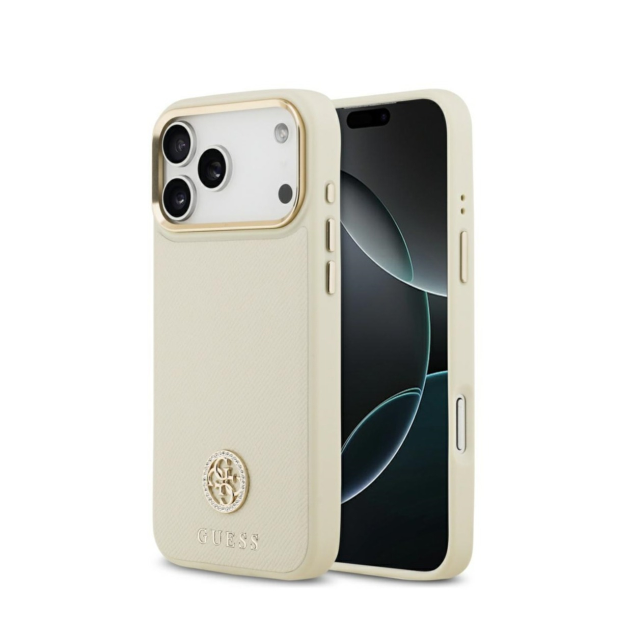 iPhone 17 Pro Max MagSafe Leder Hardcase Hülle Grained Strass Logo (GUHMP17XPGCRMDEE) - Beige