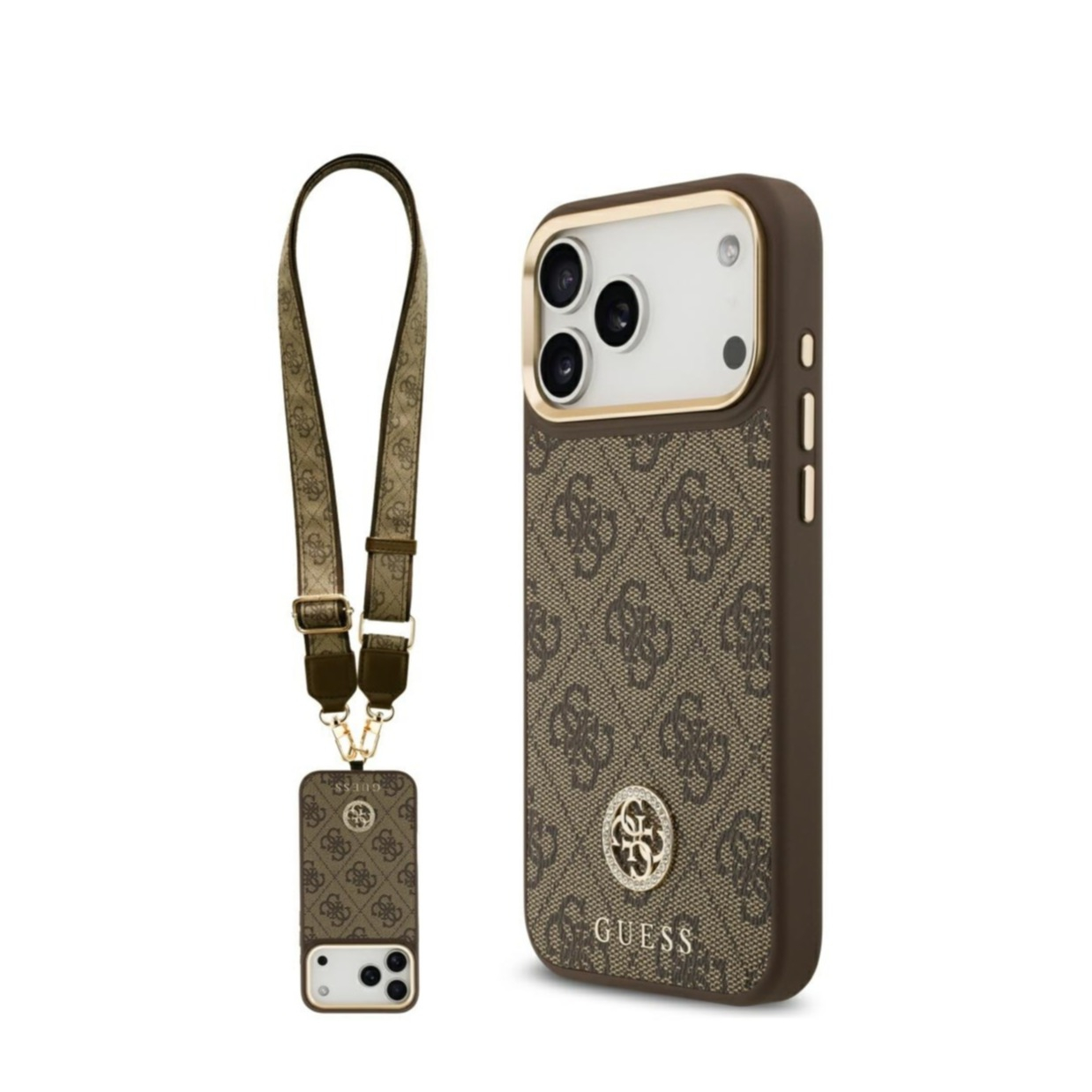 (130cm) iPhone 17 Pro Max MagSafe Necklace Hardcase Hülle Crossbody 4G Strass Logo & Big Strap (GUHMP17XP4G4DCSW) - Braun