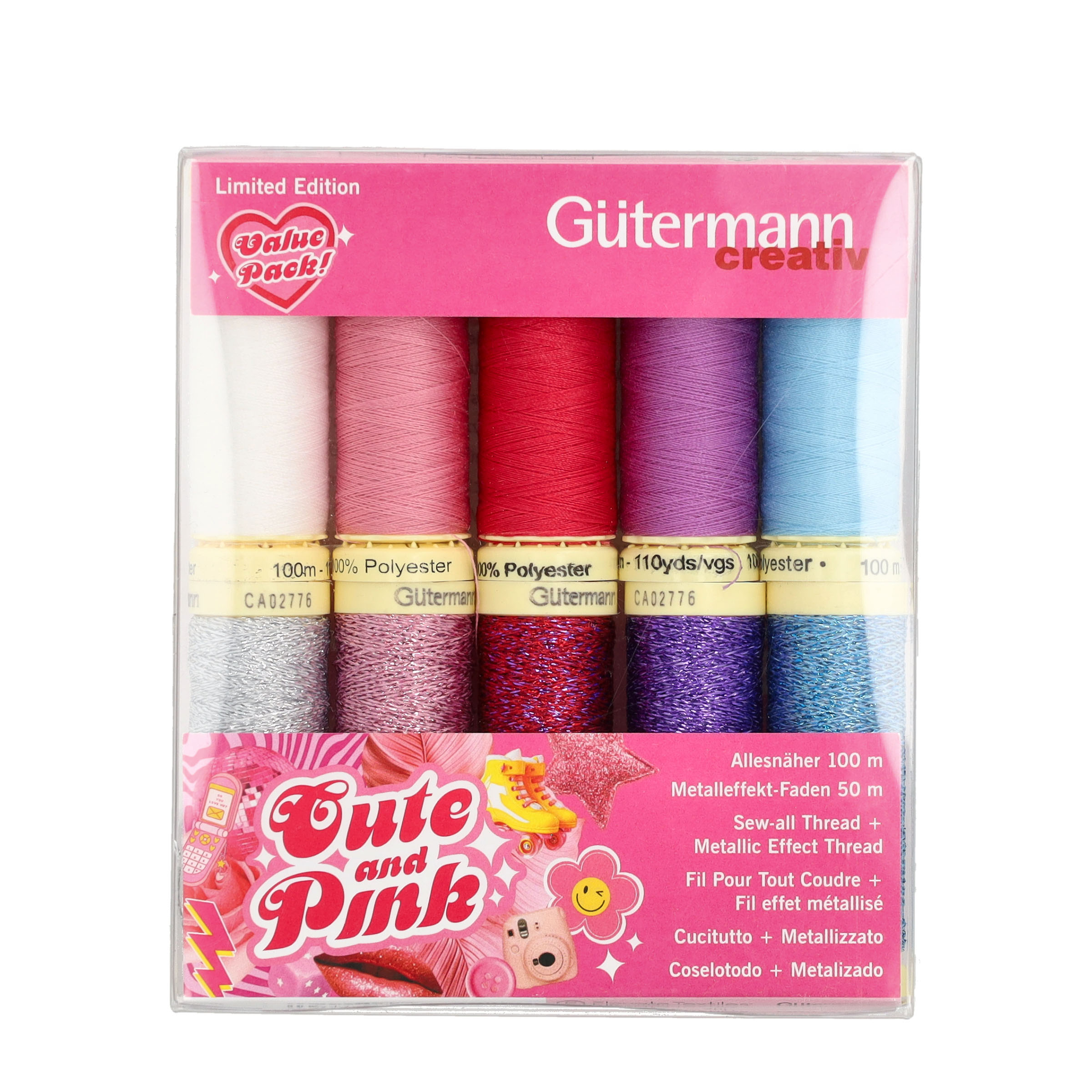 Mit dem Gütermann Nähfaden Set in Cute and Pink setzt du glanzvolle Akzente in deinen Nähprojekten. Das Set enthält 10 hochwertige Allesnäher Fäden, davon 5 mit edlem Metalleffekt. Perfekt geeignet für Handwerk, DIY und Mercerie, verleihen sie Kleidung, Taschen, Accessoires oder Dekorationen eine besondere Note. Die Fäden sind reissfest, farbintensiv und leicht zu verarbeiten, sowohl mit der Nähmaschine als auch von Hand. Mit dieser Auswahl hast du immer den passenden Faden für kreative und langlebige Arbeiten zur Hand.
