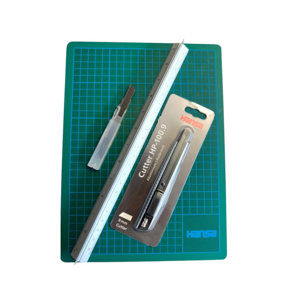 Das Hansa Schneide Set A4 ist das ideale Werkzeug Set für präzise DIY und Bastelarbeiten. Es enthält alles, was du für exaktes Schneiden und Messen brauchst, eine Schneidematte, einen hochwertigen HP-100.9 Cutter, ein Alu-Lineal sowie 10 Ersatzklingen. Die rutschfeste Schneidematte schützt deine Arbeitsfläche und ermöglicht saubere Schnitte, während der Aluminium Cutter mit Auto Lock Funktion Sicherheit und Kontrolle bietet. Perfekt für Papier, Karton, Folie, Stoff oder andere Bastelmaterialien. Das Hansa Schneide Set überzeugt durch Qualität, Präzision und vielseitige Einsatzmöglichkeiten, ein unverzichtbares Werkzeug für alle, die kreativ arbeiten und auf saubere Ergebnisse Wert legen.