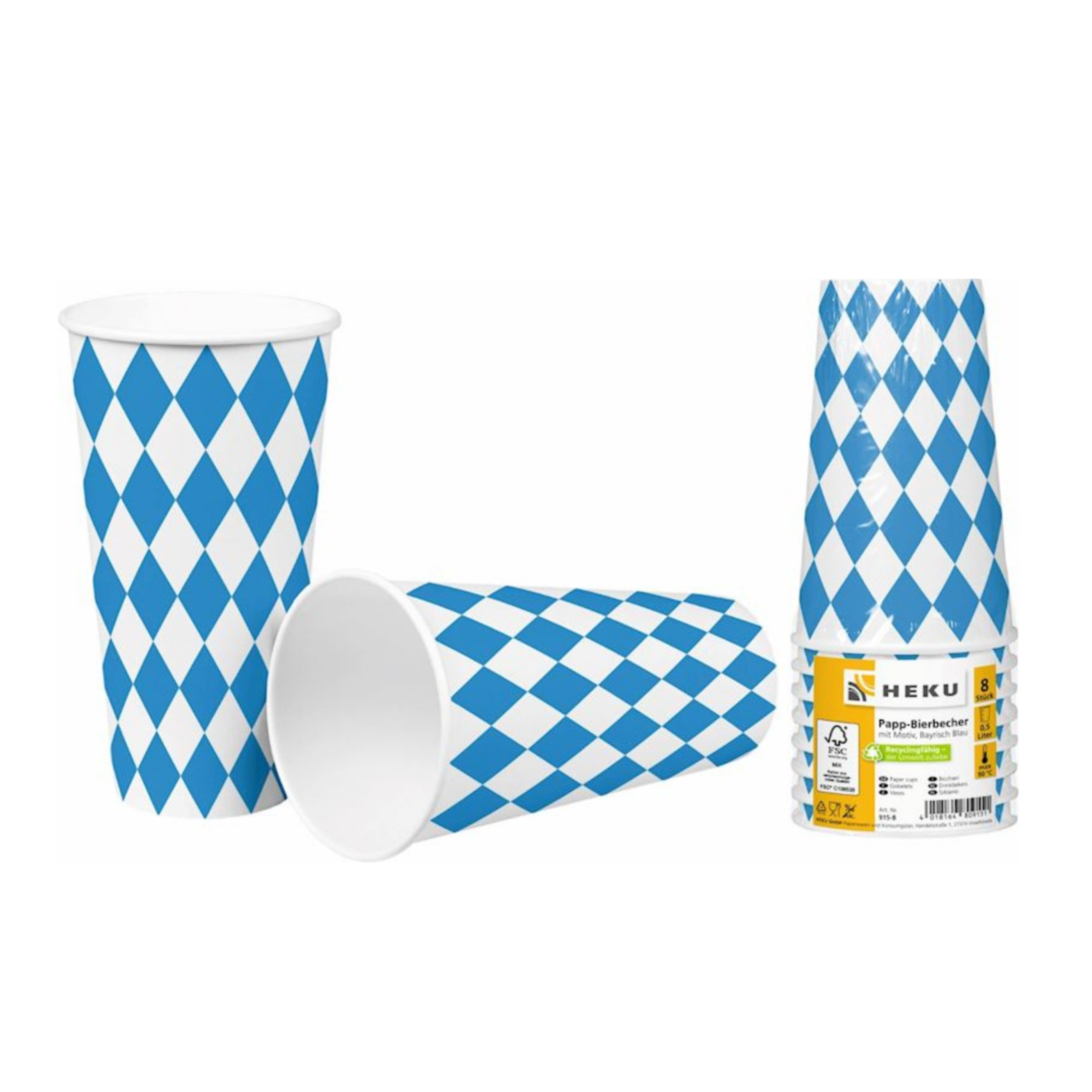 Das Heku 8er Set Pappbecher ist perfekt für deine Oktoberfest Party oder jedes festliche Event. Mit ihrem klassischen Oktoberfest Design sorgen die Einwegbecher aus robustem Papier für Stimmung auf deinem Tisch. Ideal für Bier, Limonade und andere Getränke. Die 8 Becher sind leicht und praktisch für den einmaligen Gebrauch, keine Abwaschpflicht, einfach geniessen! Ideal für Partys, Oktoberfest oder als stilvolle Tisch Deko.