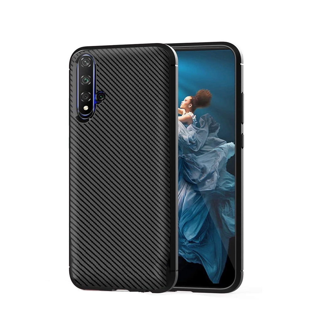 Huawei Nova 5T / Honor 20 Gummi Hülle Ultra Thin im Carbon Look - Schwarz