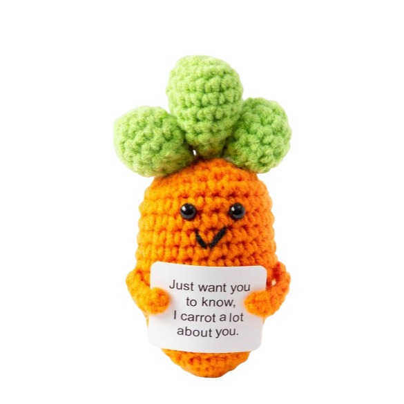 Dann bestelle dir noch heute diese niedliche Positive Carrot von I AM CREATIVE! Das gehäkelte Plüschtier ist ideal als Geschenk, Aufmunterung oder Glücksbringer geeignet. Stelle die Karotte auf deinen Schreibtisch, deinen Nachttisch oder nehme sie mit zu wichtigen Prüfungen. Schenke das Mini Kuscheltier einem Menschen, der dir wichtig ist und zaubere ihm ein Lächeln ins Gesicht!