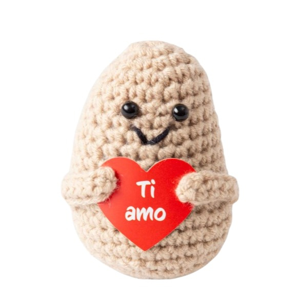 (75x45mm) Positive Potato Gehäkelter Mini Glücksbringer Plüschtier Kartoffel Kuscheltier Geschenkidee (1000-1462) - Ti amo