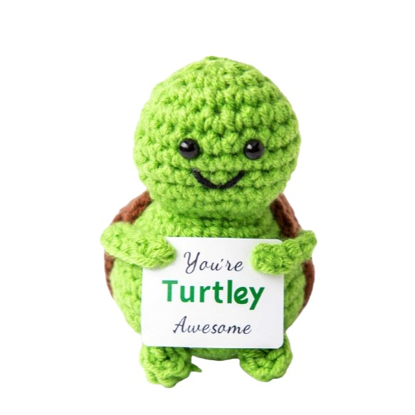 Dann bestelle dir noch heute diese niedliche Positive Turtle von I AM CREATIVE! Das gehäkelte Plüschtier ist ideal als Geschenk, Aufmunterung oder Glücksbringer geeignet. Stelle die Schildkröte auf deinen Schreibtisch, deinen Nachttisch oder nehme sie mit zu wichtigen Prüfungen. Schenke das Mini Kuscheltier einem Menschen, der dir wichtig ist und zaubere ihm ein Lächeln ins Gesicht!