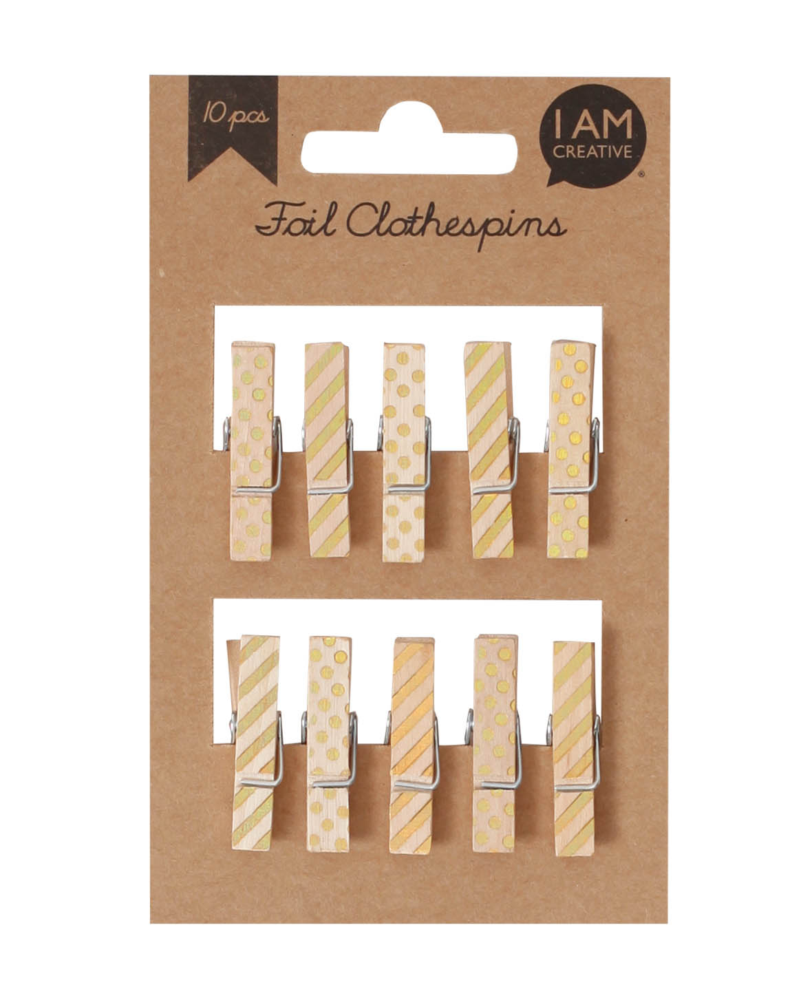 (10er Set) Holzklammern bedruckt Deko Klammern zum Basteln - Gold / Braun